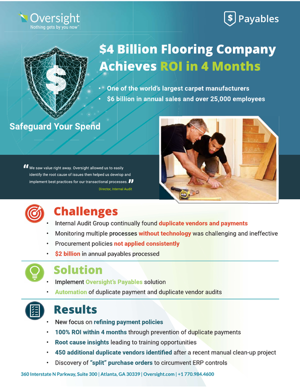 " We saw value right away. Oversight allowed us to easily identify the root cause of issues then helped us develop and implement best practices for our transactional process." -Director, Internal Audit